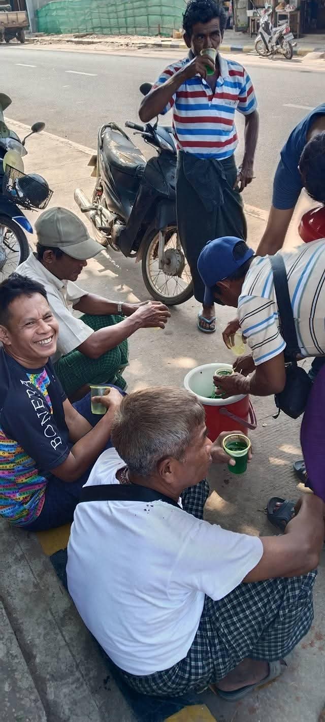 “ကျနော်တို့ ချောင်းဆုံမှာ ချောင်းဆုံကြက်ခြေနီအသင်းက ဆီတန်းစီတဲ့ နေရာမှာ ရေသန့်ဗူးကြီး လာလှူထားတာ တွေ့ရ တယ်။ တချို့အိမ်တွေက အိမ်ရှေ့မှာ ရေကုသိုလ်ပြုကြတယ်။ အပေါ့အပါး သွားခွင့်ပေးတယ်။လက်ဖက်သုတ်တို့ဘာတို့ ကျွေးတယ်။ တချို့လည်း ကားနဲ့ရောက်လာပြီး အအေး လာတိုက်တယ်။ ပြည်သူတွေပဲ လုပ်ပေးတယ်”ဟု ၎င်းက ပြောသည်။