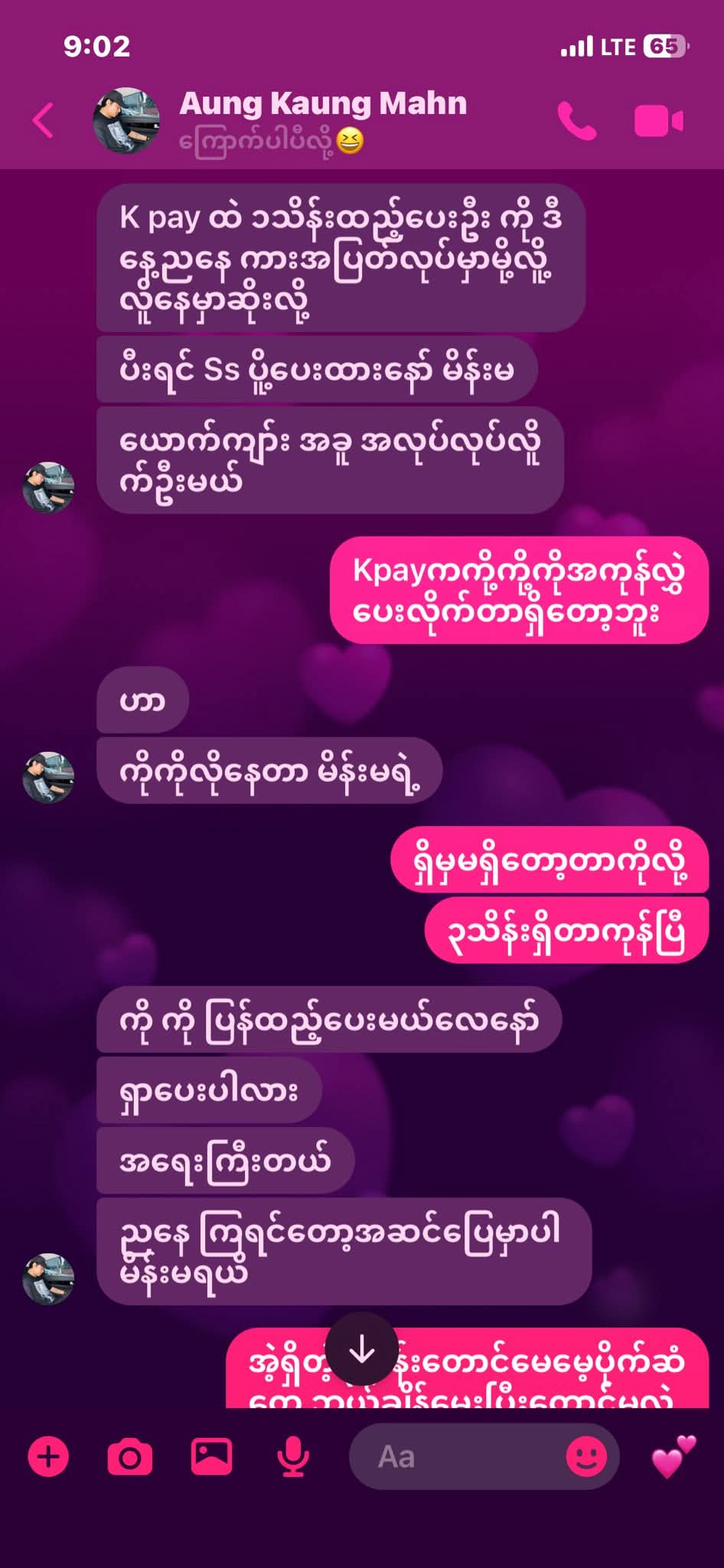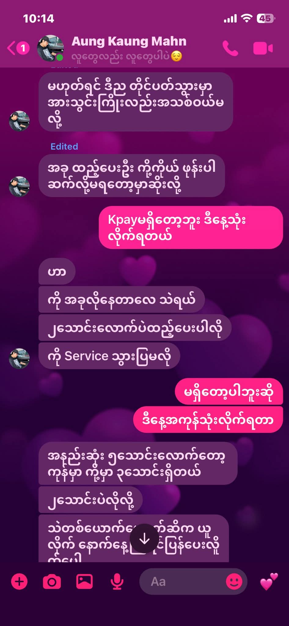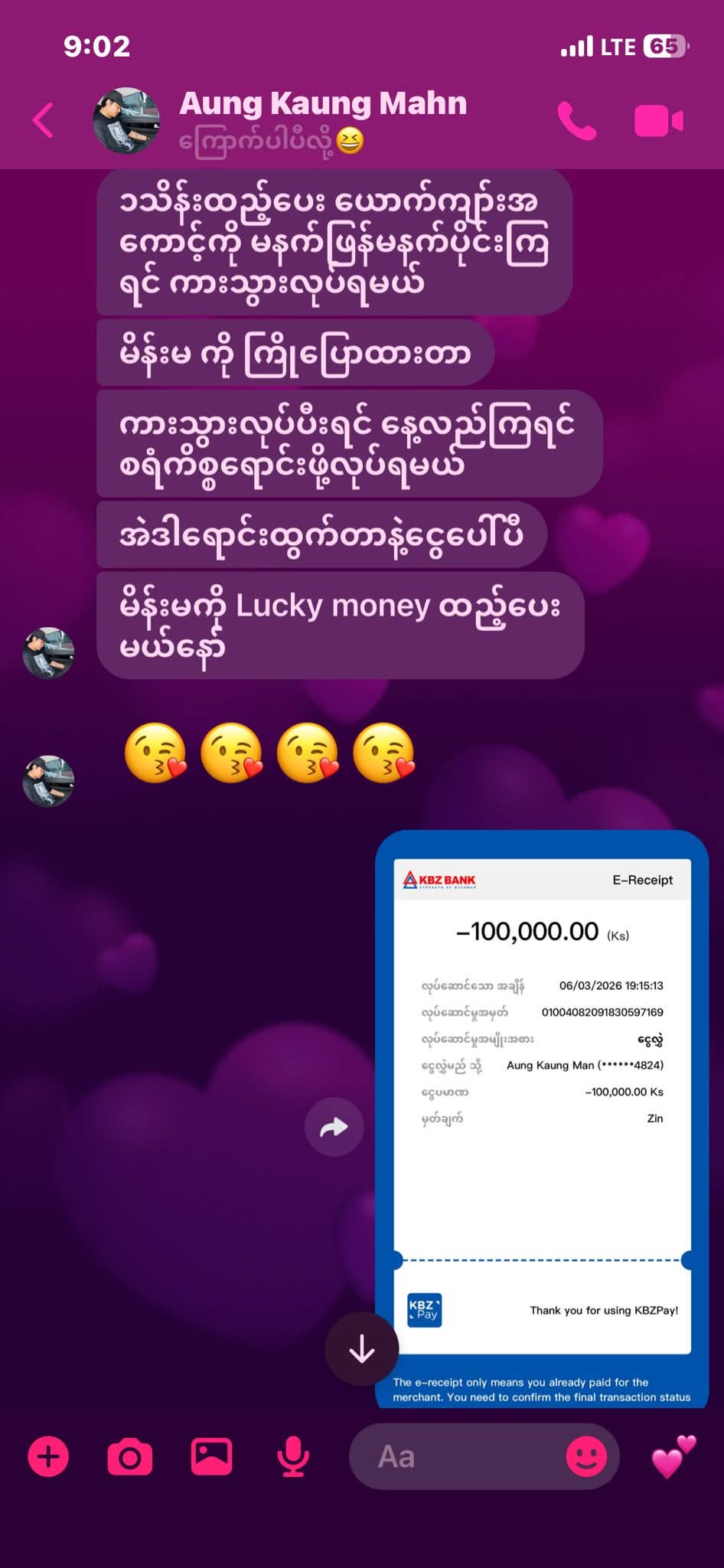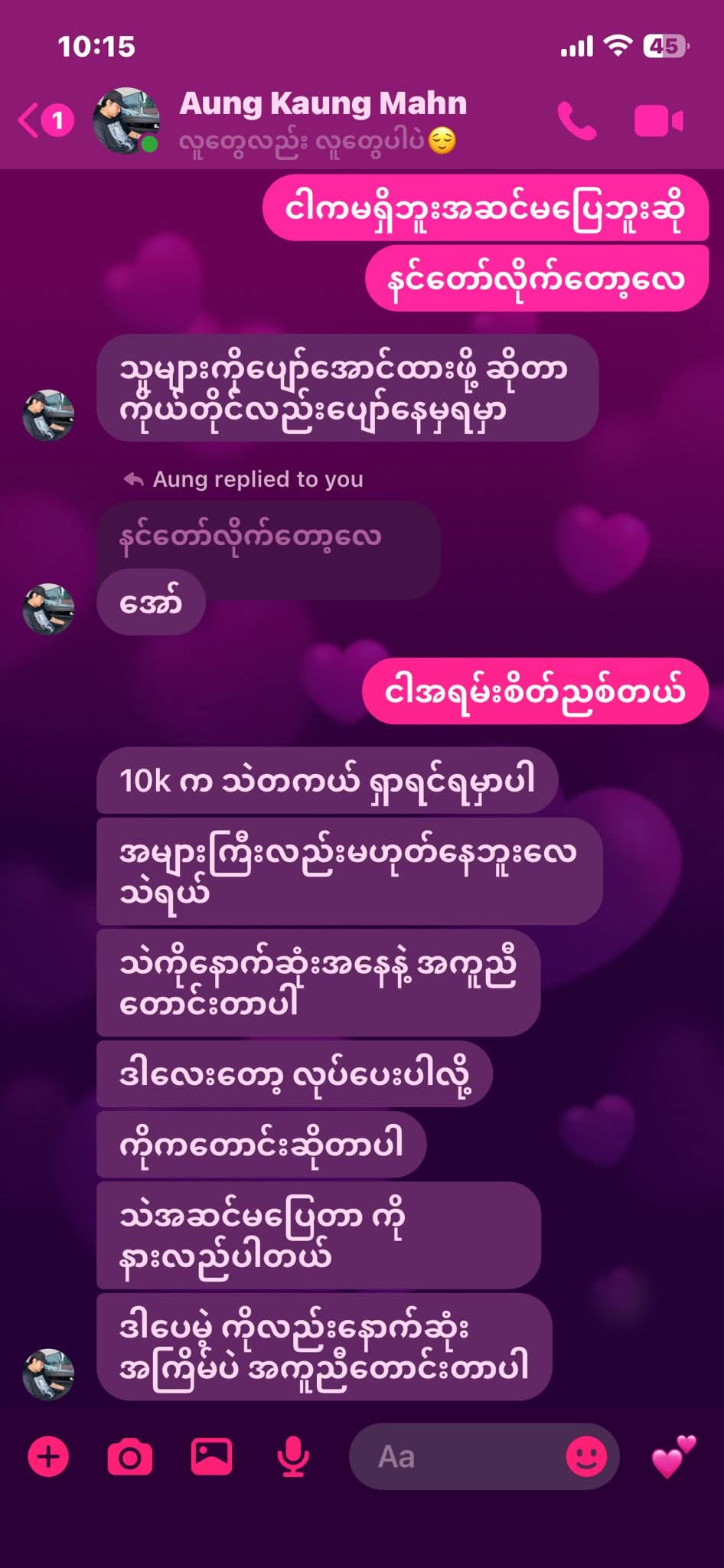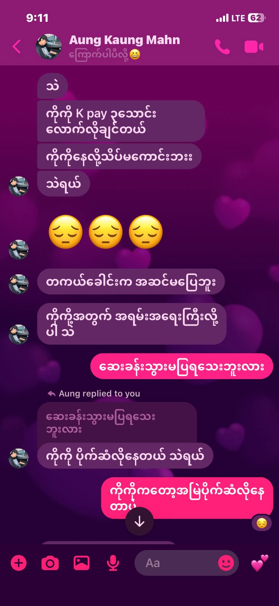 နင့်ကိုတောင်းတဲ့၁၀သိန်းကလည်းနင်Kpayတောင်ထားတာတွေပဲရှိသေးတယ်နော်
