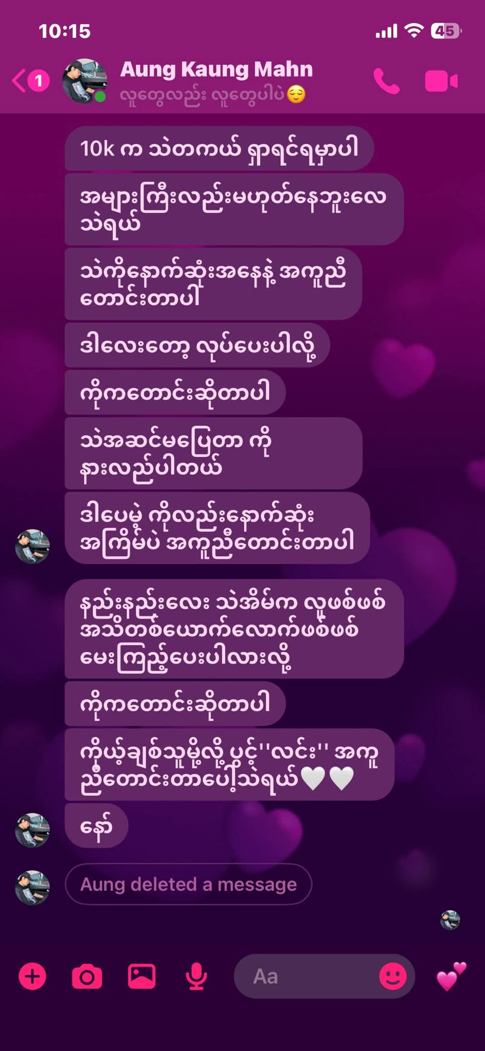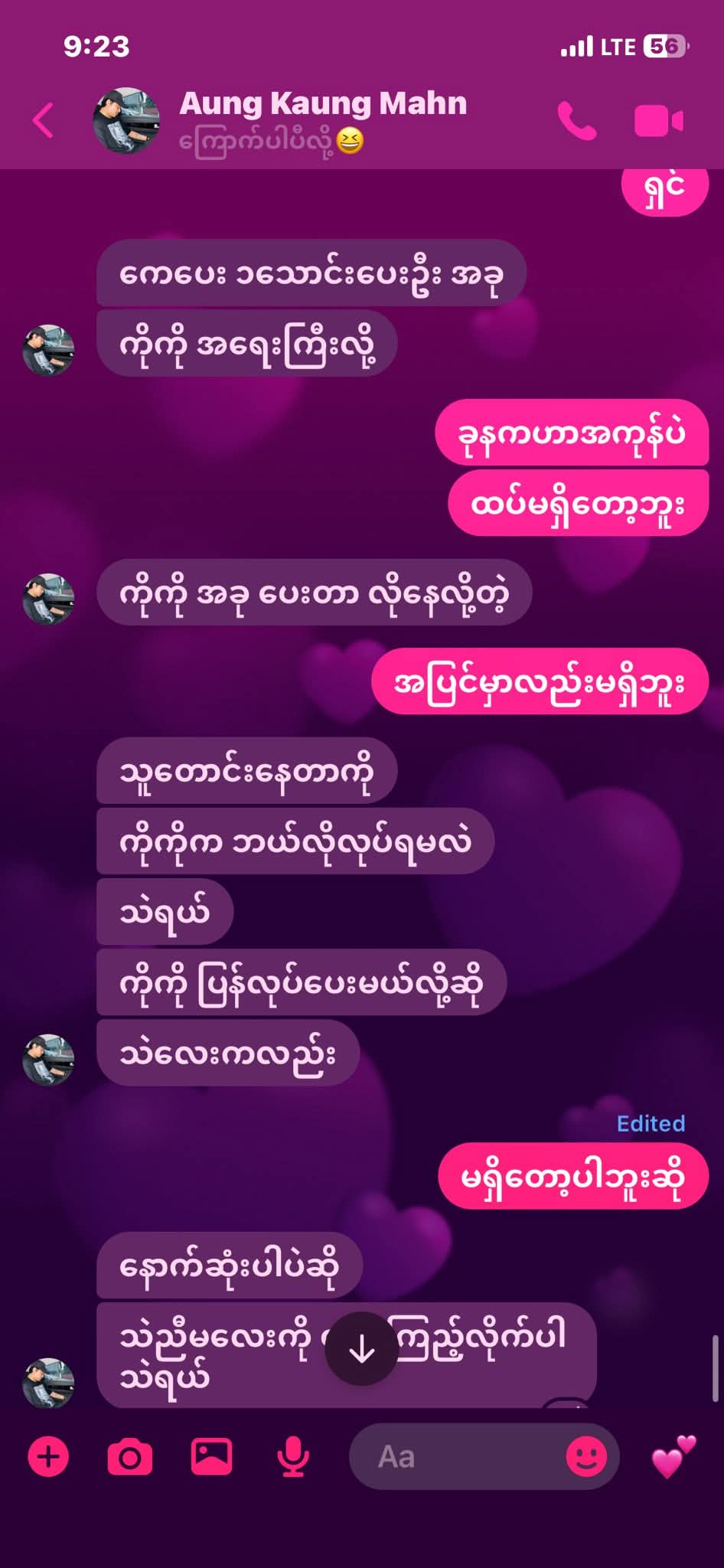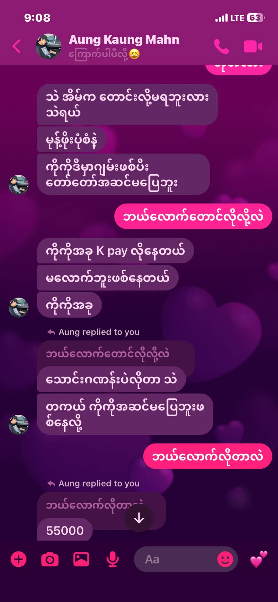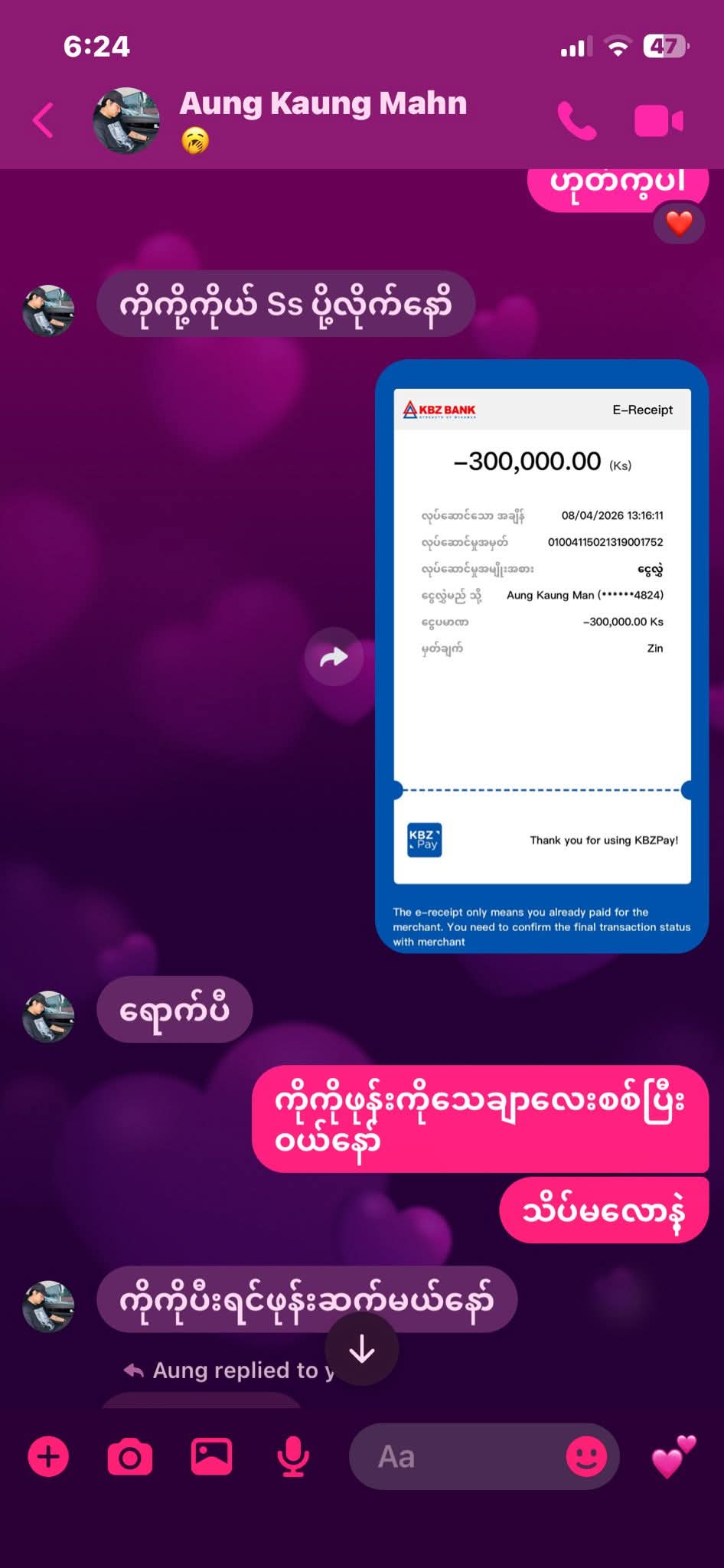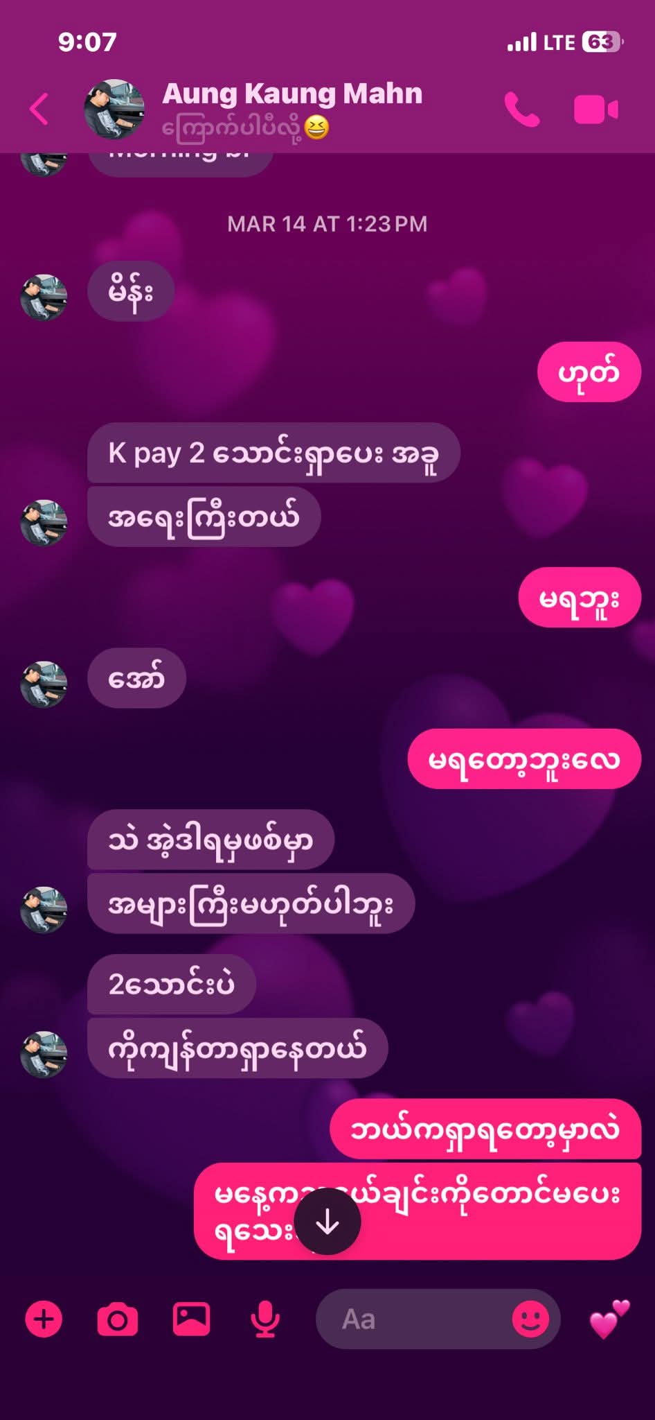 နင့်ကိုတောင်းတဲ့၁၀သိန်းကလည်းနင်Kpayတောင်ထားတာတွေပဲရှိသေးတယ်နော်