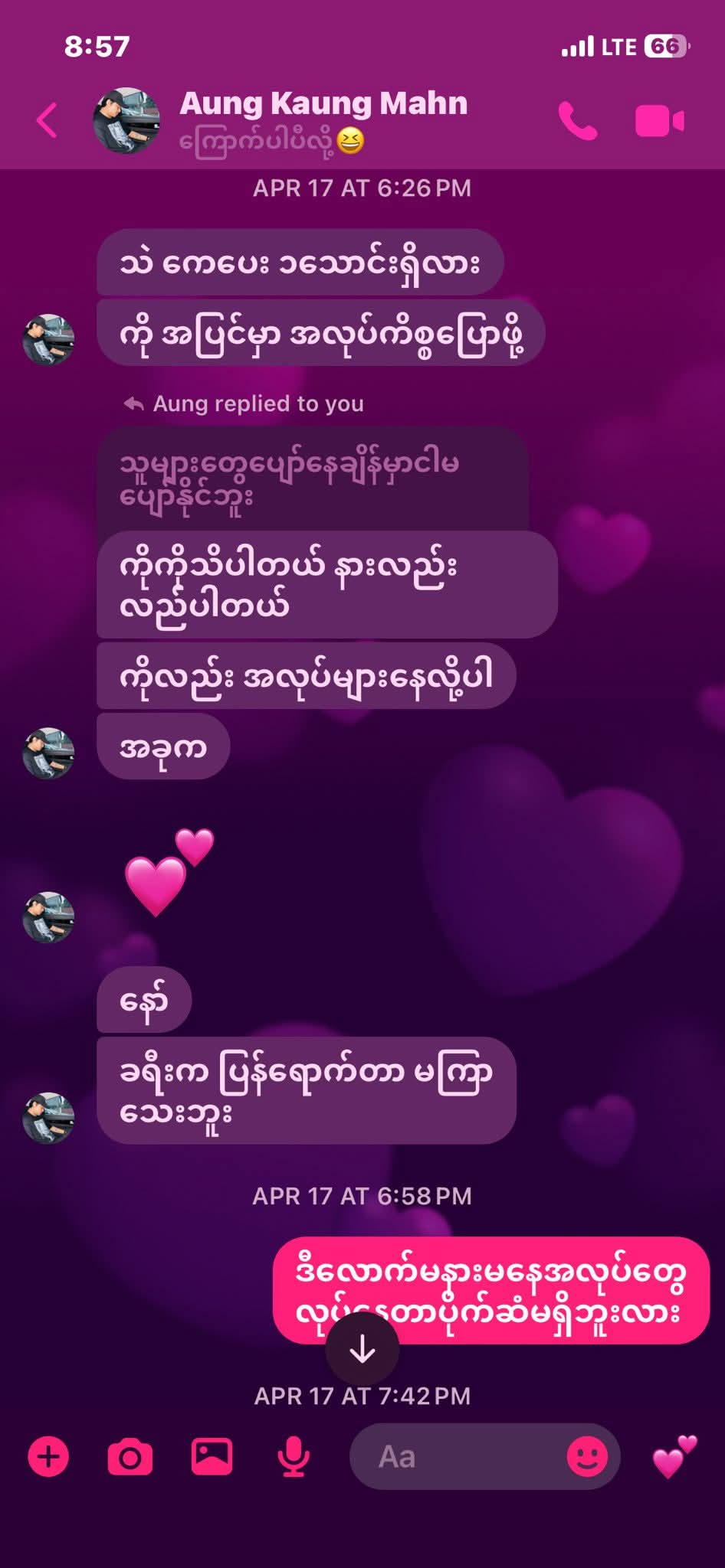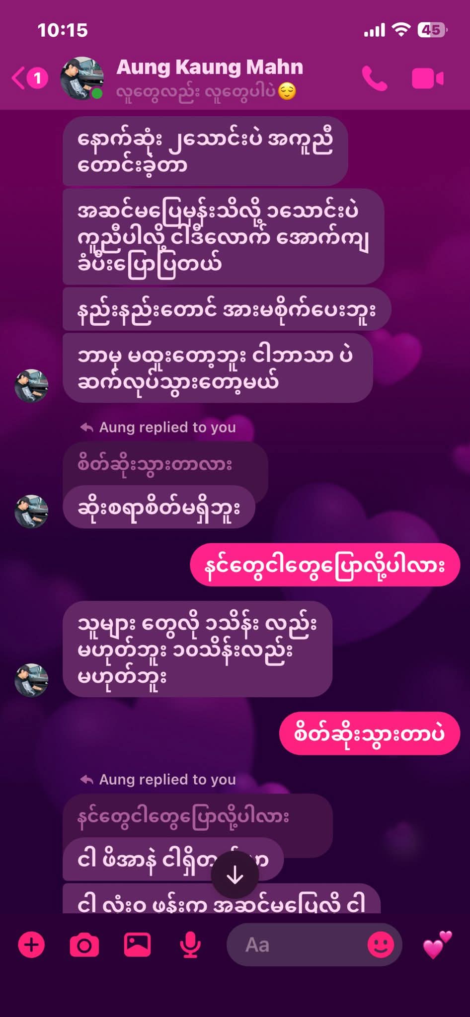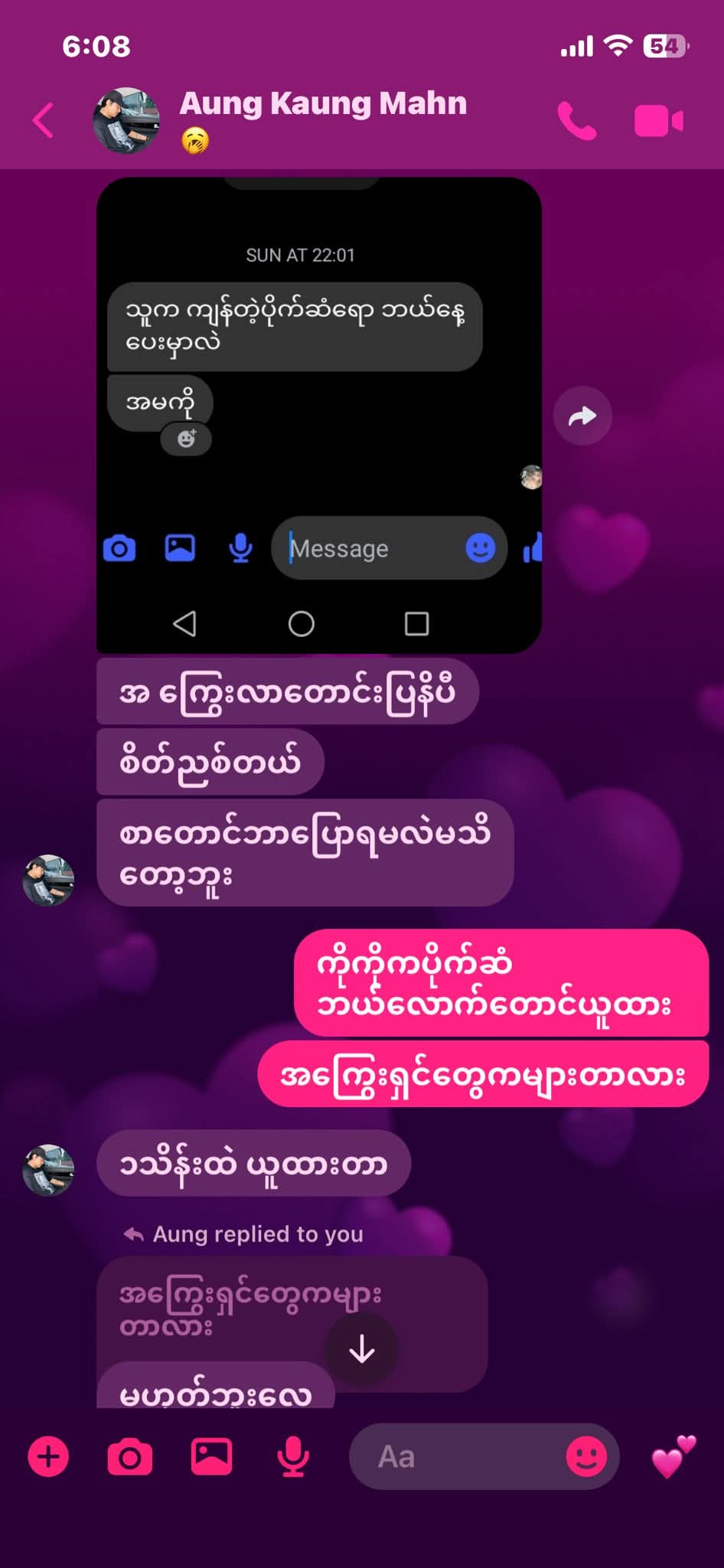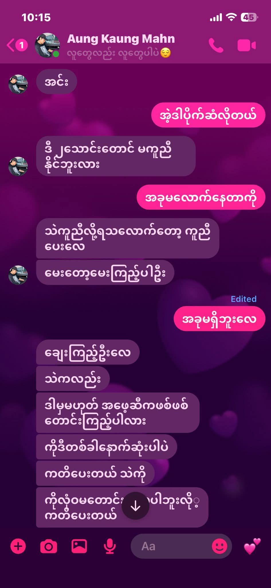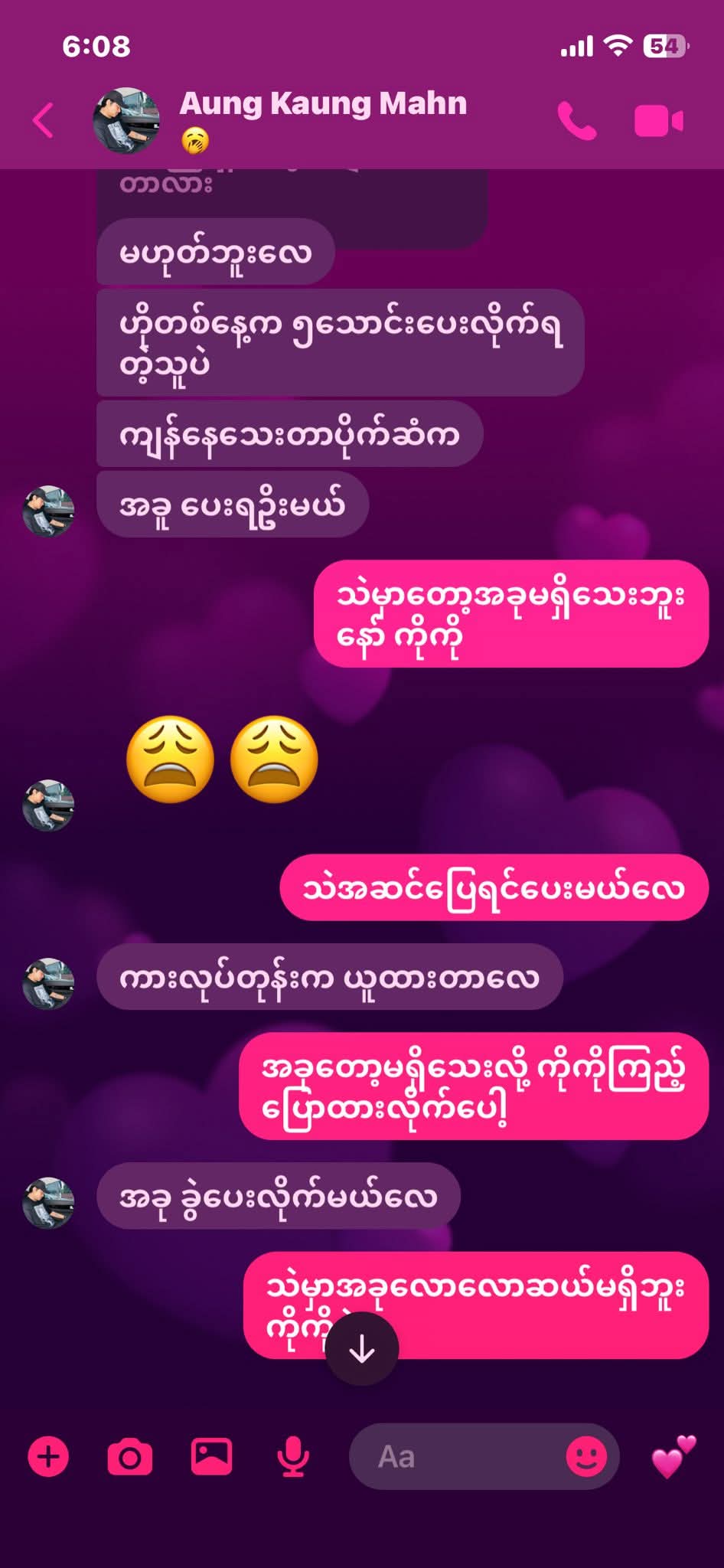 နင့်ကိုတောင်းတဲ့၁၀သိန်းကလည်းနင်Kpayတောင်ထားတာတွေပဲရှိသေးတယ်နော်