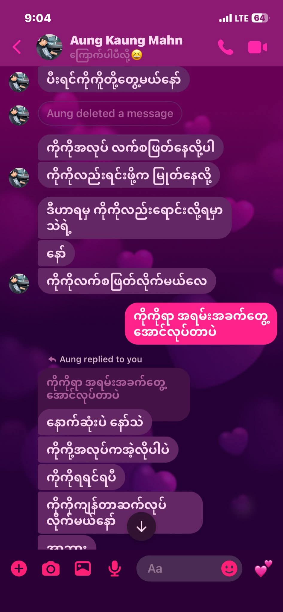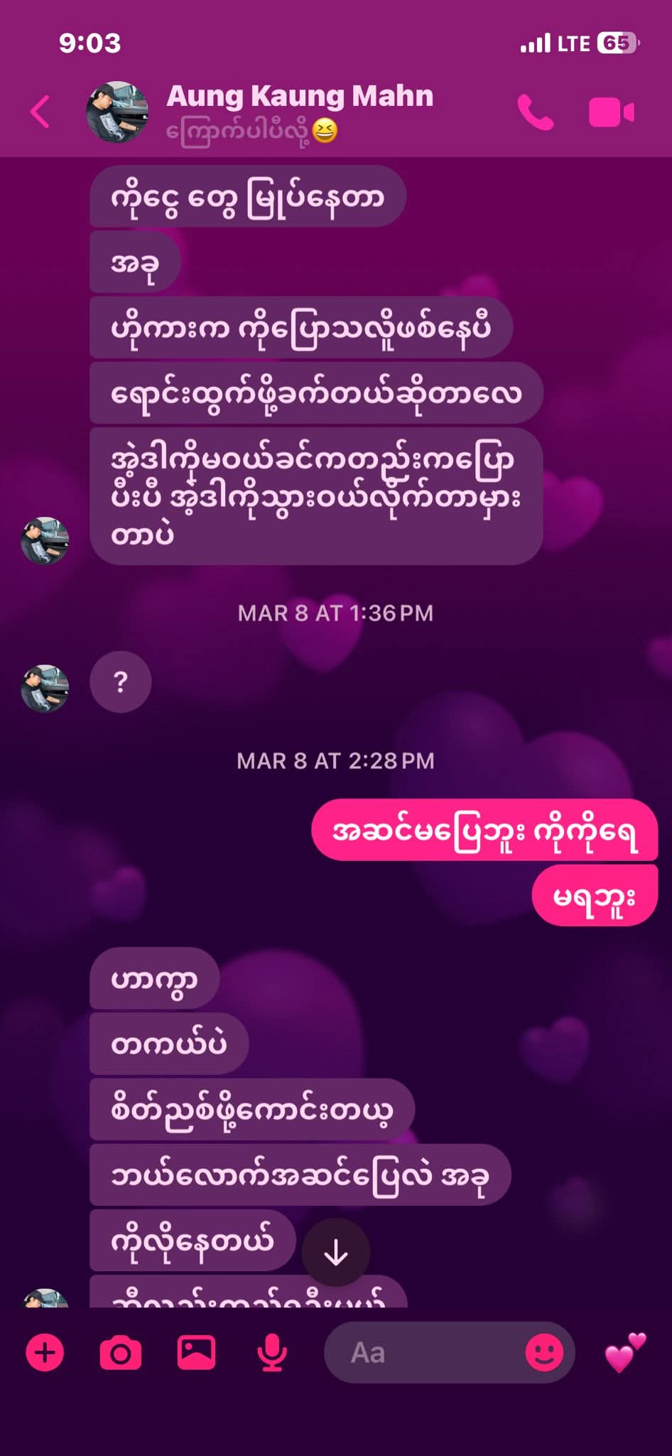 ရည်းစားရှိတယ်ပြောတာတောင်အတင်းလိုက်ကပ်တာတွေ