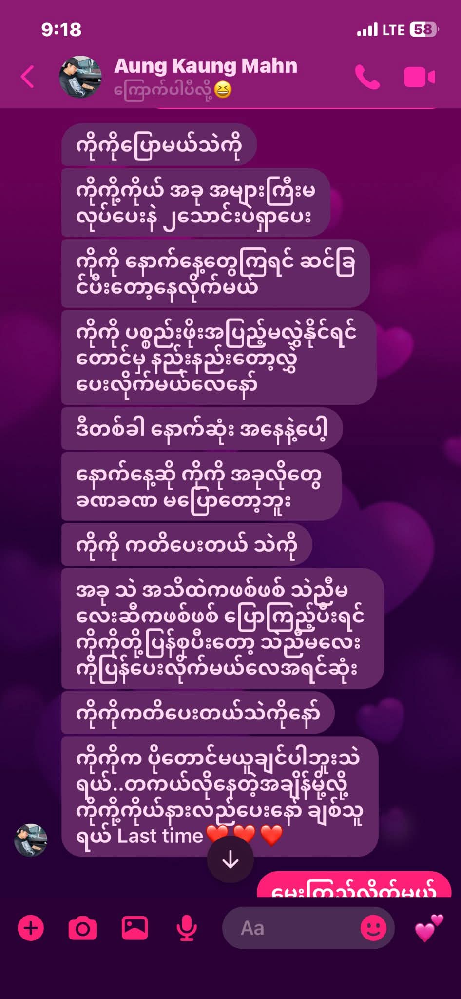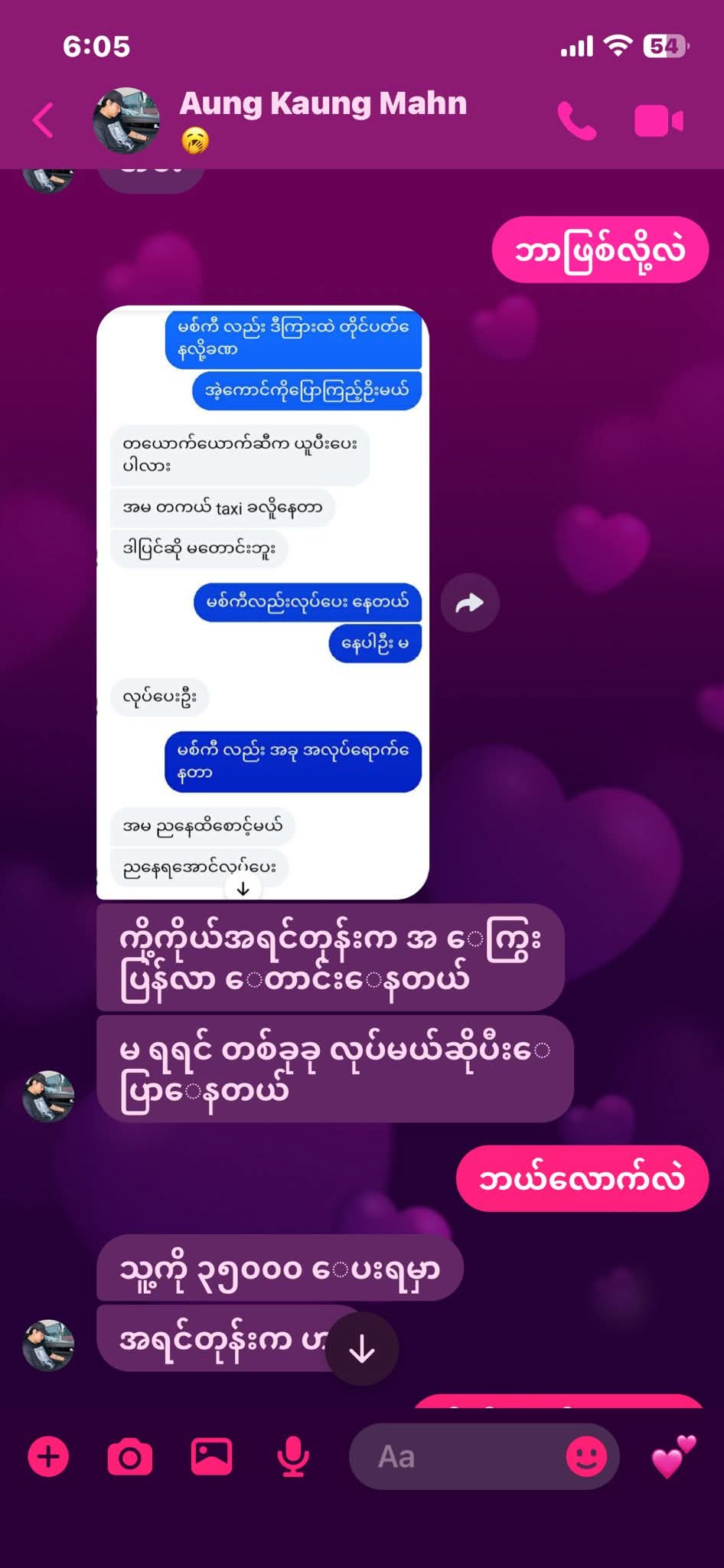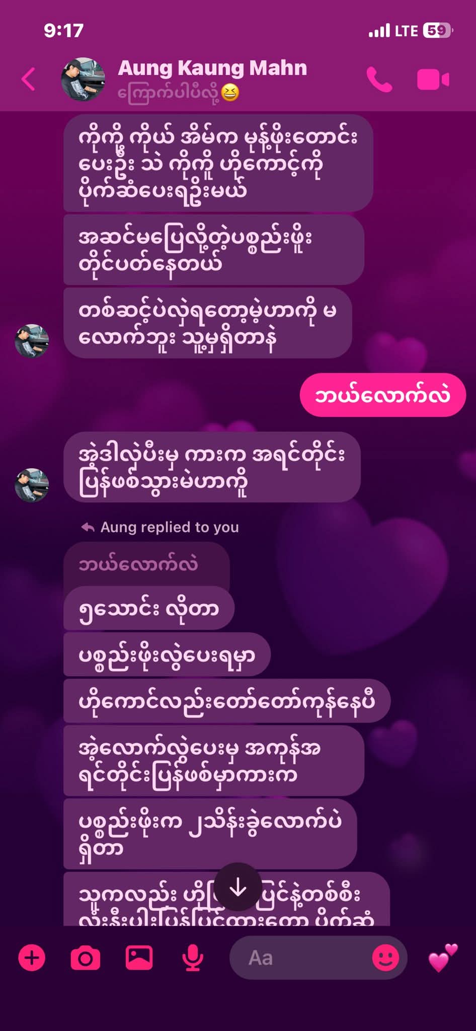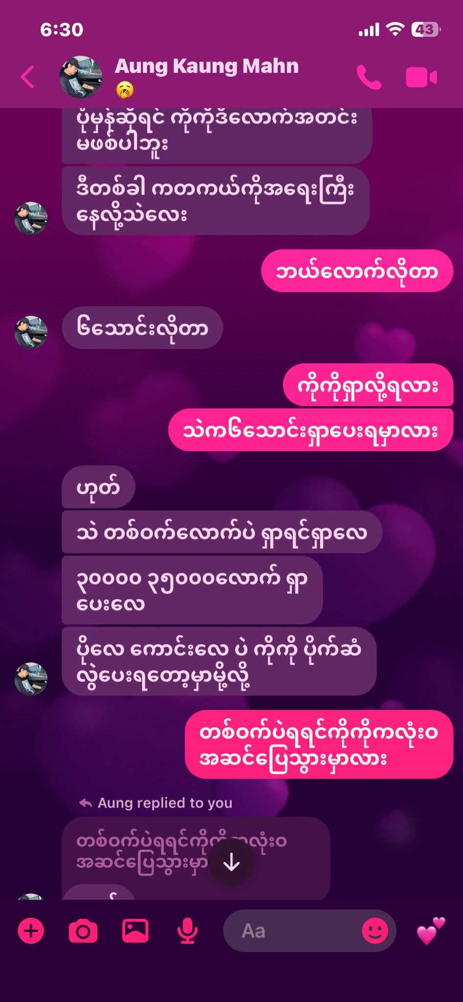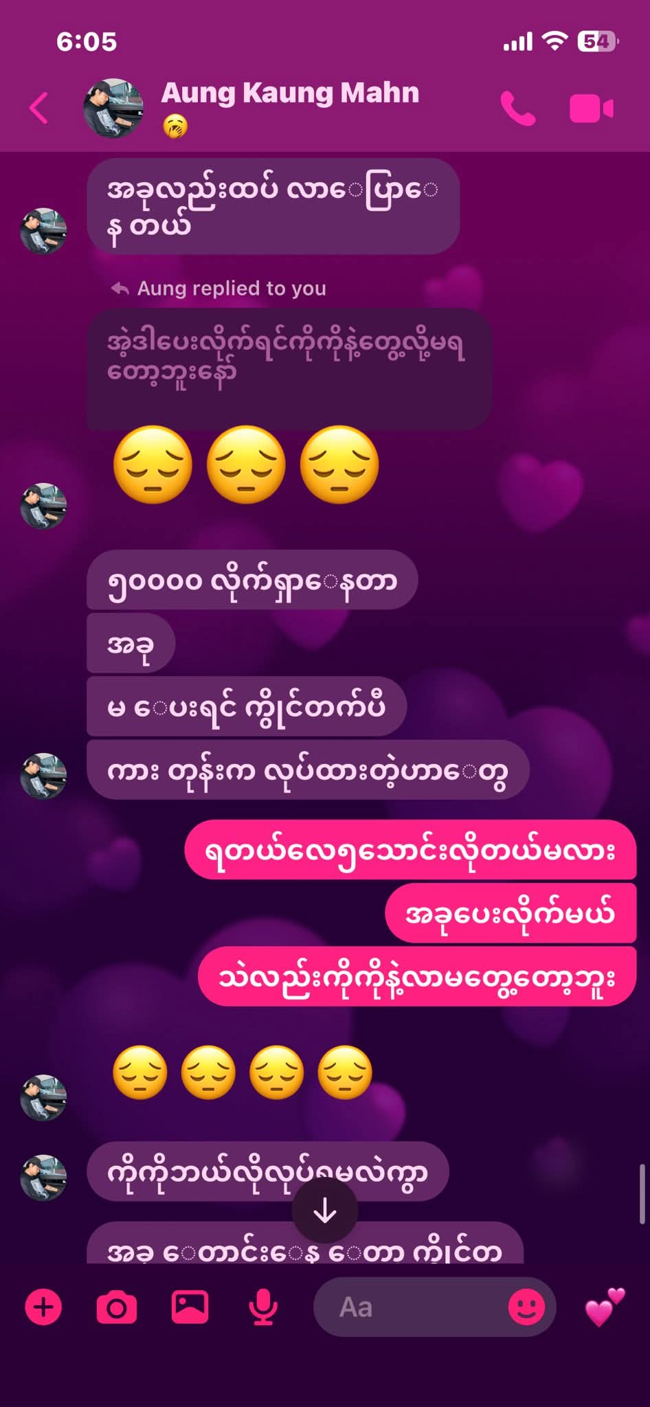 နင်ငါနဲ့တွဲတုန်းကတောင်းခဲ့ပိုက်ဆံတွေစုစုပေါင်း(၁၀သိန်း)ပြန်လာပေးပါ