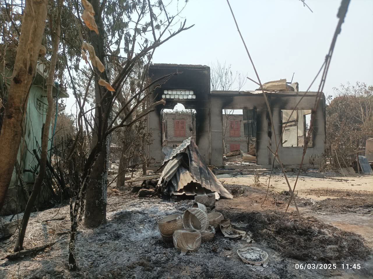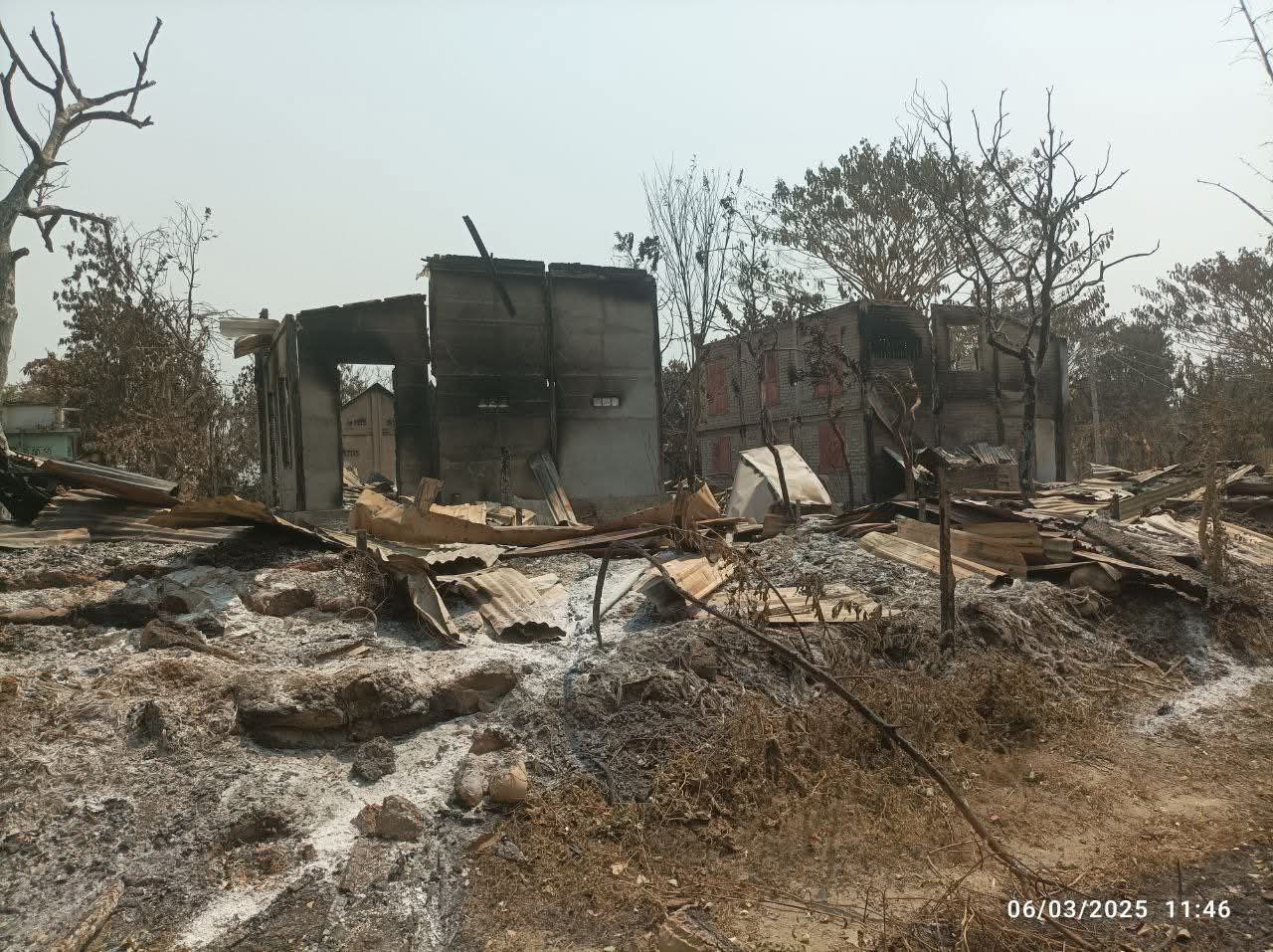 အဆိုပါ အကြမ်းဖက် စစ်တပ် စစ်ကြောင်းသည် ကျေးရွာအတွင်းရှိ ပြည်သူပိုင် ပစ္စည်းဥစ္စာ အားလုံးကို ခိုးယူ လုယက်သွားပြီး မတ်လ ၄ ရက်နေ့အထိ ၃ ရက်ဆက်တိုက် မီးရှို့ ဖျက်ဆီးခဲ့ခြင်းကြောင့် ရွာလုံးကျွတ်နီးပါး မီးလောင်ပြာကျခဲ့ကြောင်း သိရသည်။