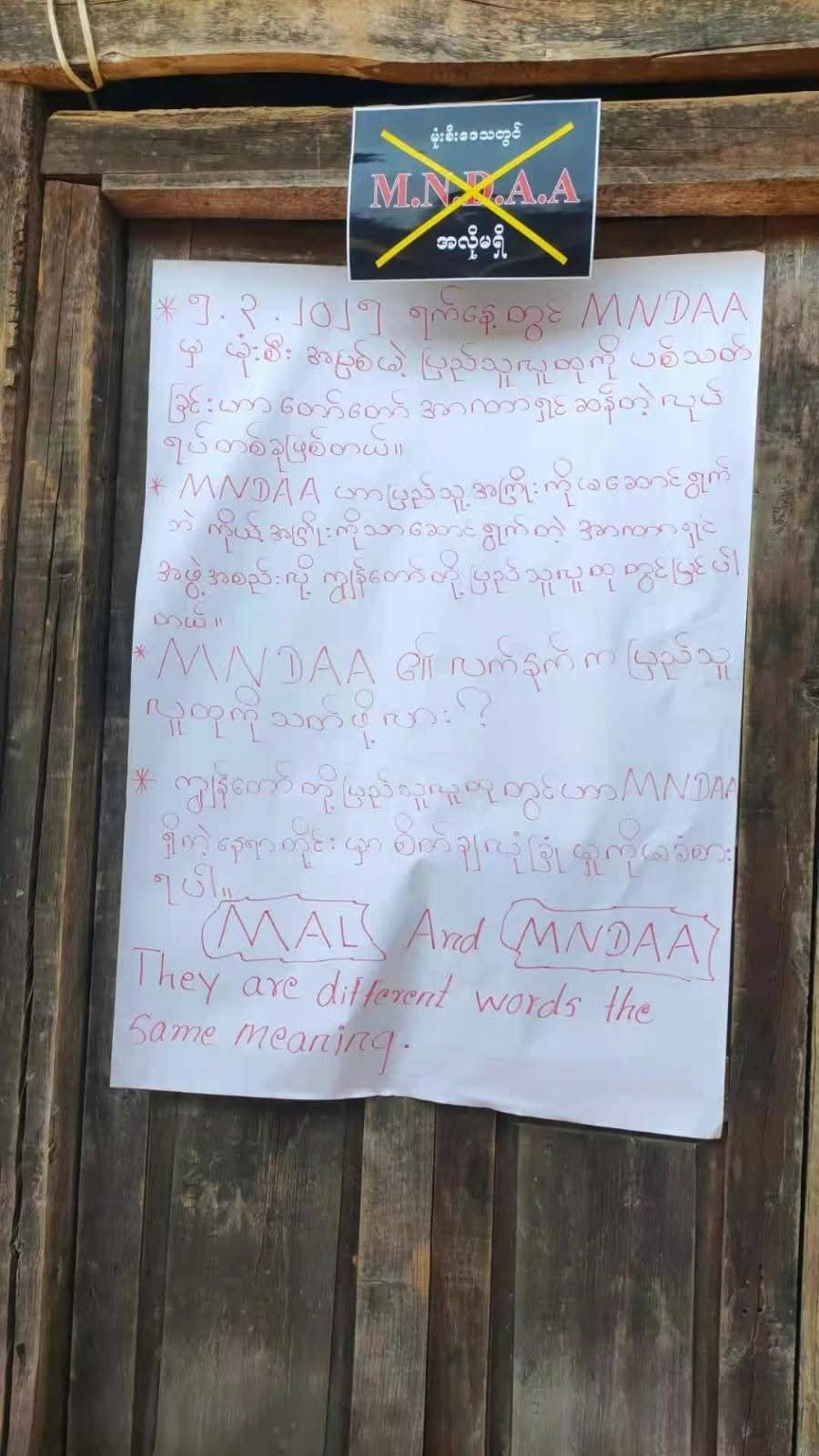 တောင်းဆိုချက်တွင် MNDAA တပ်ဖွဲ့ဝင်များကို ပြည်သူလူထုရှေ့မှောက်၌ အပြစ်ဝန်ခံခိုင်းရန်၊ ပြည်သူများအားသတ်ဖြတ်သည့် မည်သည့်အဖွဲ့အစည်းမဆို ကျေးရွာအတွင်းမထားရှိရန်၊ ပြည်သူများအားအသိပေးခြင်းမပြုဘဲ မည်သည့်ကိစ္စရပ်မျှမပြုလုပ်ရန် စသည့်အချက်များလည်းပါဝင်သည်။