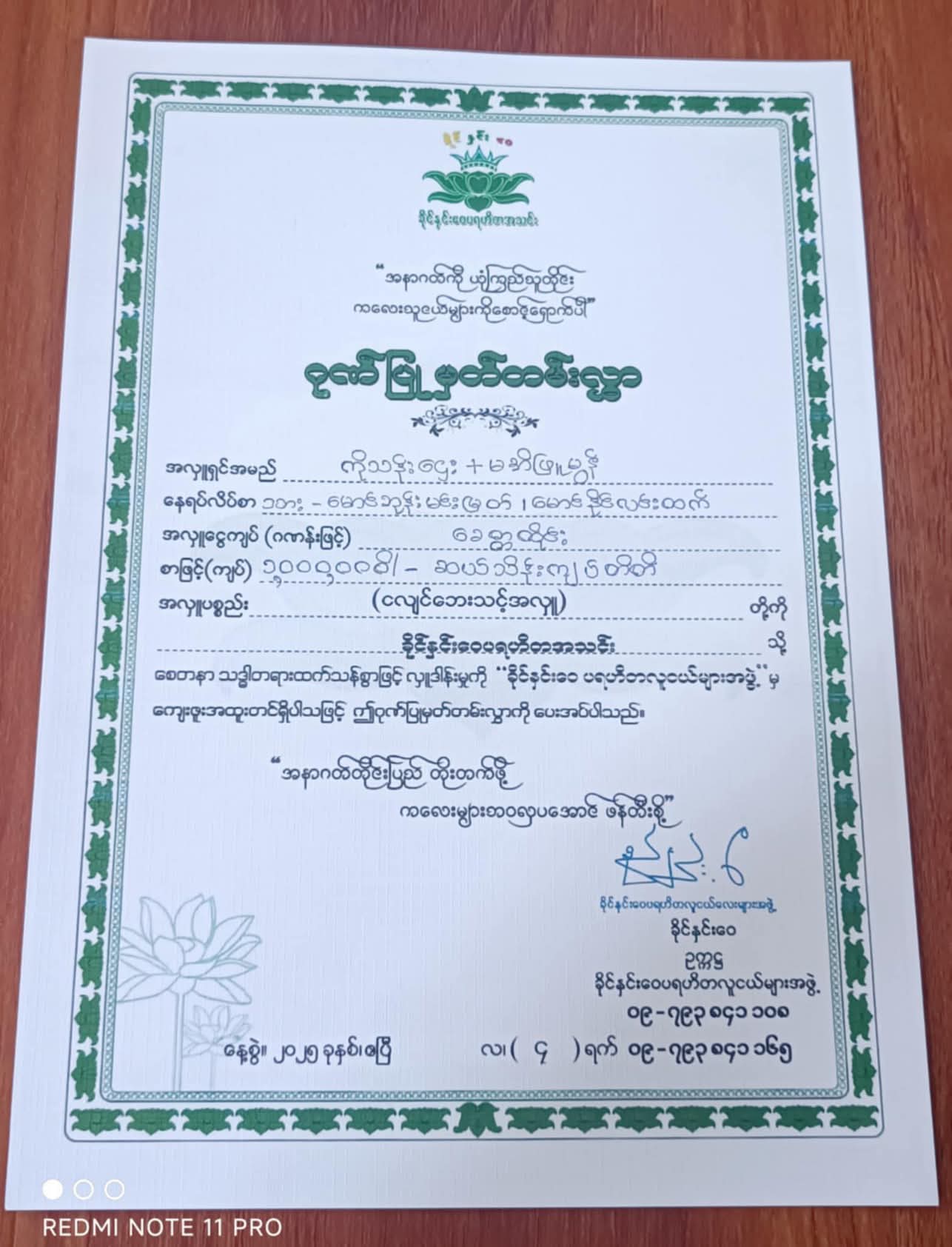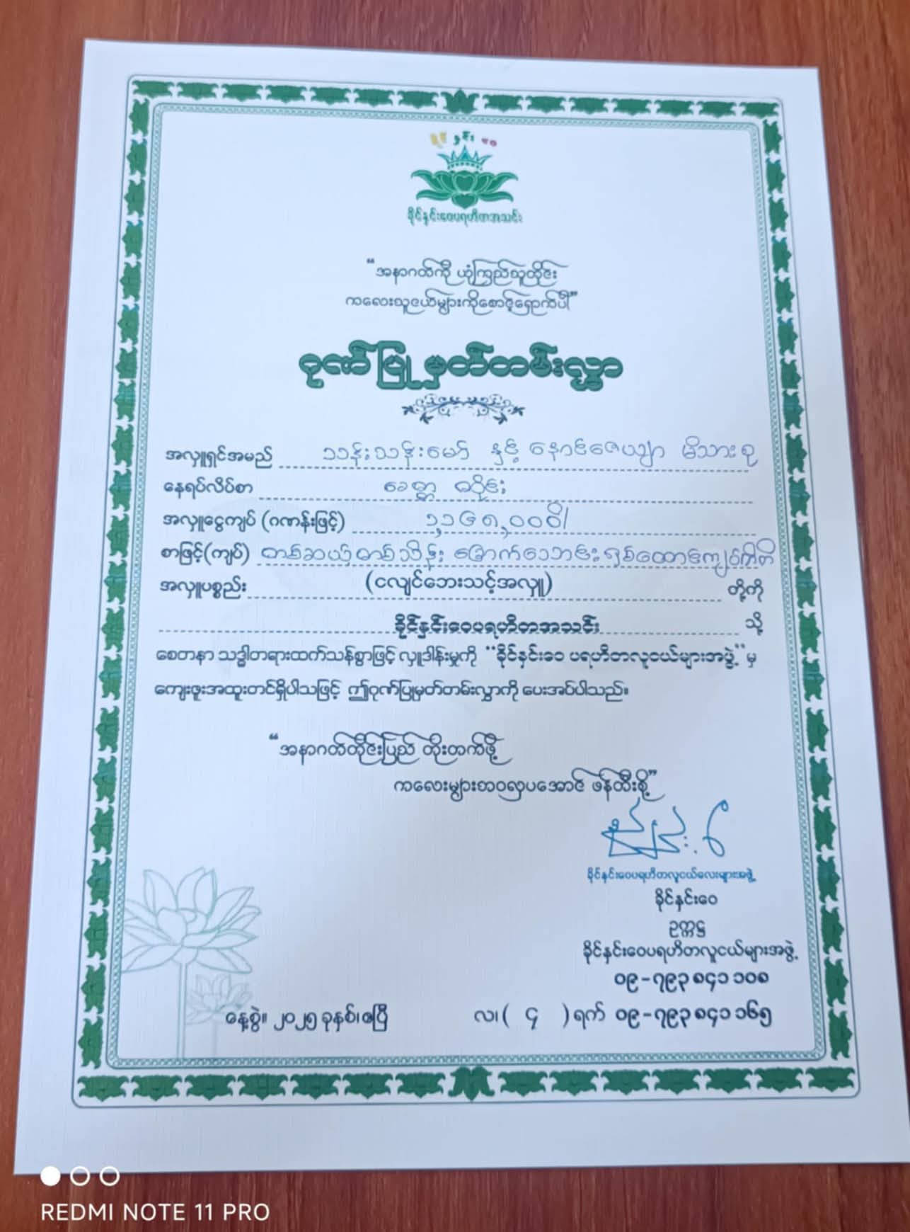 စောင့်ခိုင်းတဲ့ရက်ပြည့်လို့ ဖုန်းခေါ်တဲ့ အခါ ဖုန်းမကိုင်လို့ လူကိုယ်တိုင်သွားမေးတဲ့အခါ တောင်ဒဂုံ မြို့နယ်ရုံးက ထောက်ခံချက်သွားယူခိုင်း ပါတယ်။မြို့နယ်ရုံးကလည်းသူတို့နဲ့မဆိုင်ဘူး အဲ့လိုပေးရတယ်လို့ လုပ်ရိုးလုပ်စဉ်မရှိဘူးလို့ ပြောပါတယ်။