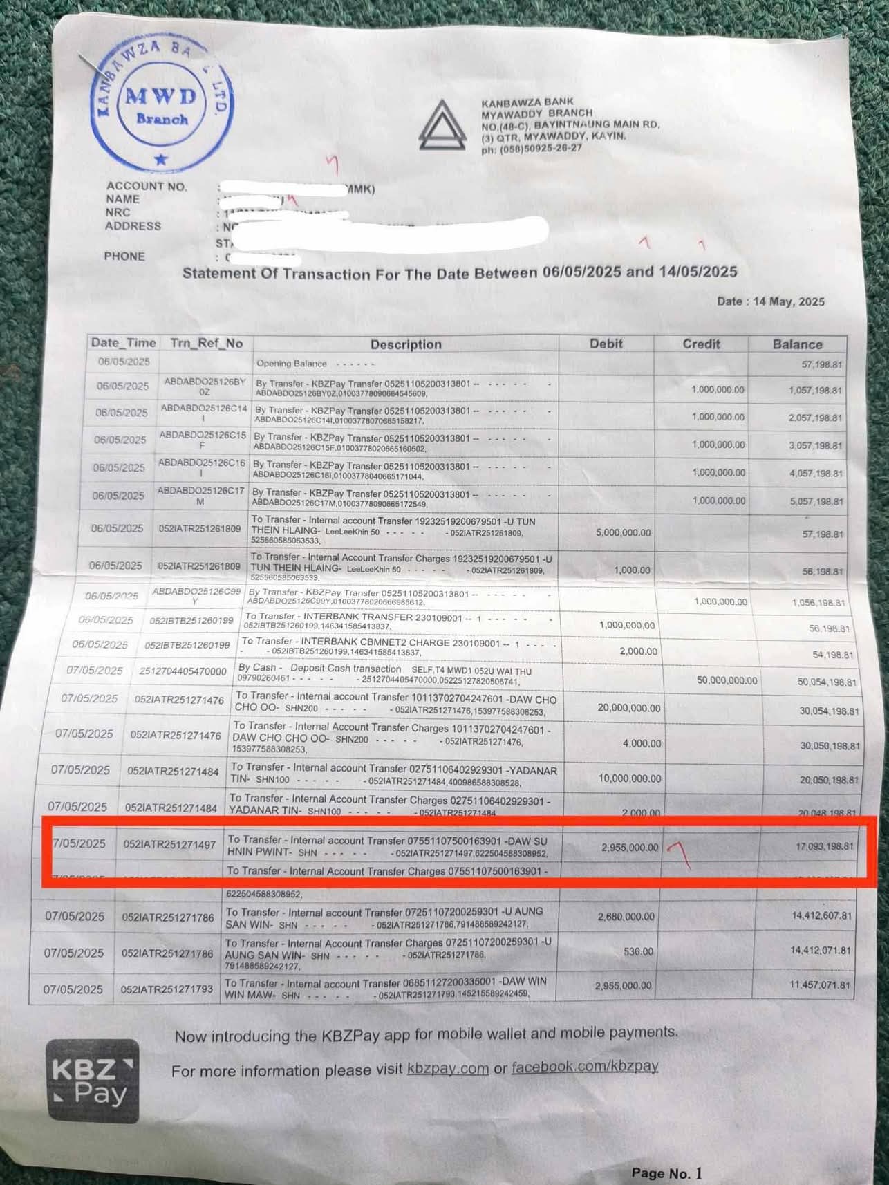 မခိုင်နှင်းဝေရဲ့ ဘဏ်ထဲကို ဝင်ပြီးကြောင်းလည်း အတည်ပြုပြီးသားပါ။