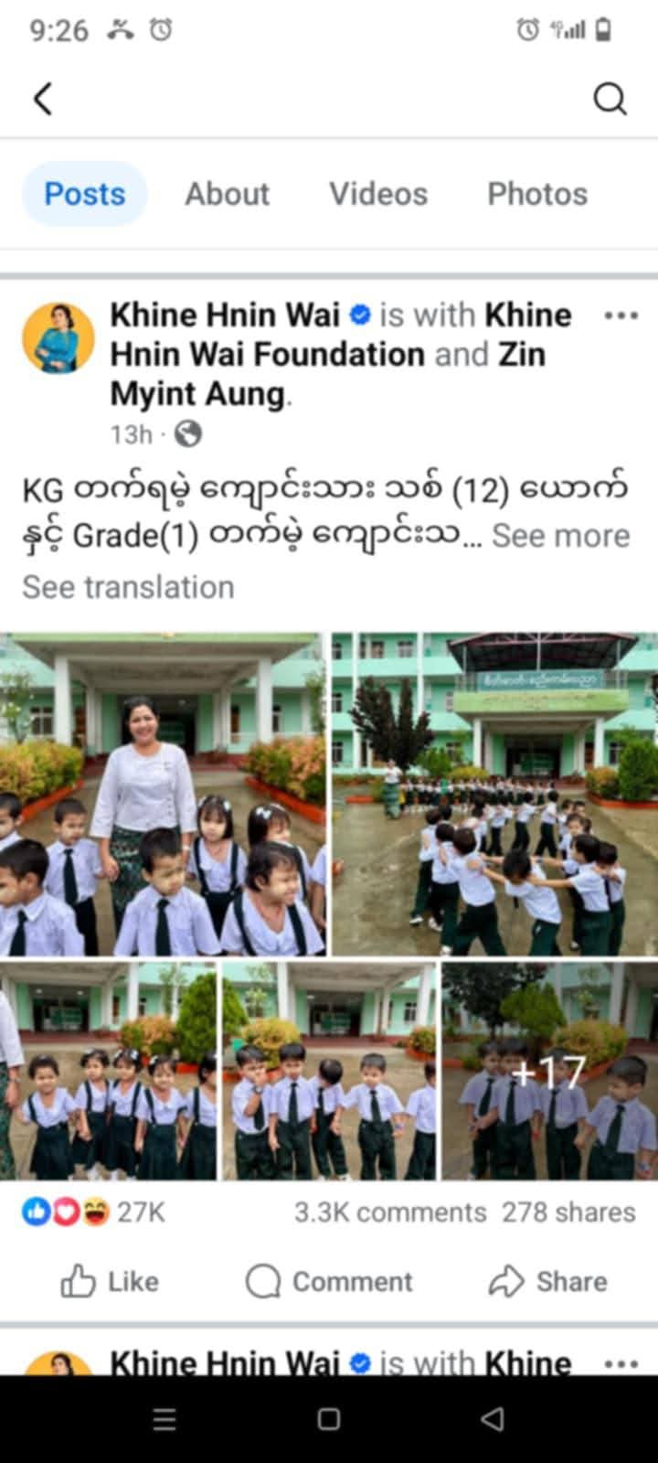 ခိုင်နှင်းဝေဟာ ဂရုမစိုက်ခဲ့တဲ့အပြင် အချိန်တန် ငါအလှူအတန်းလုပ်ပြရင် အောက်ဆွဲပညာမဲ့ဖန်တွေ ဝန်းရံမှုနဲ့အတူ ဒီအသံတွေပျောက်သွားမယ်ဆိုတဲ့ပုံနဲ့ ကလေးတွေကျောင်းအပ်တဲ့ပုံကို ဘန်းပြပြီး ပို့စ်တင်ခဲ့ပြန်ပါသေးတယ်။