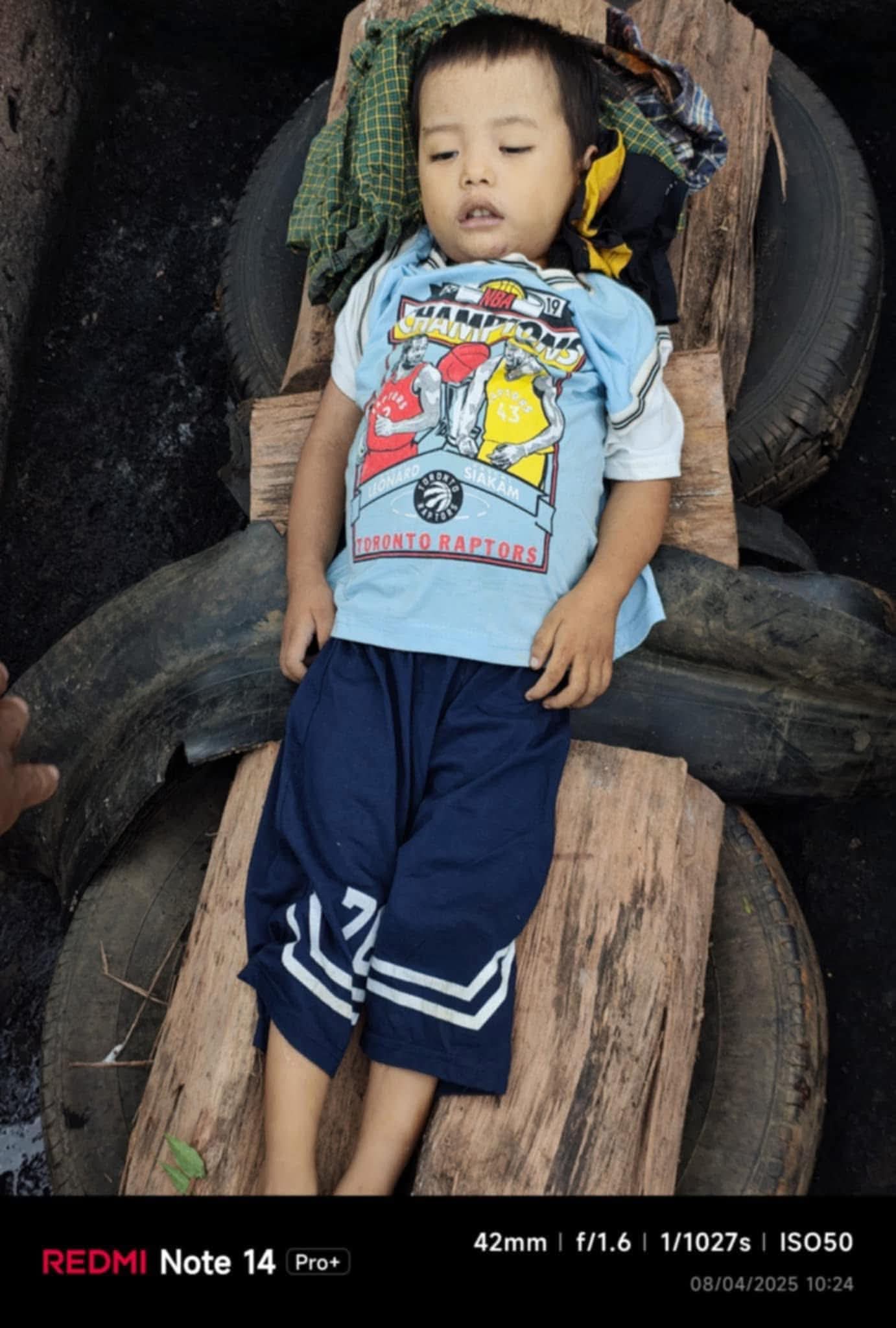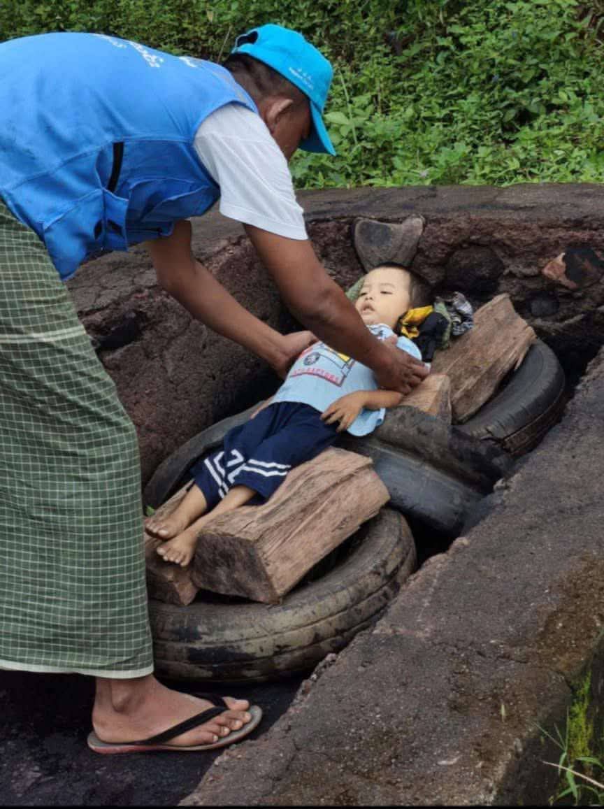 မိခင်ဖြစ်သူဟာသားလေးကိုမသင်္ဂြိုလ်ခင် အသက်ဝိညာဥ်ကင်းမဲ့သွားပြီးဖြစ်တဲ့ သားကလေးရဲ့ ခန္ဓာကိုယ်ပေါ် လက်နှစ်ဖက်တင်ရင်း ခေါင်းငိုက်စိုက် ကျနေခဲ့တယ်။
